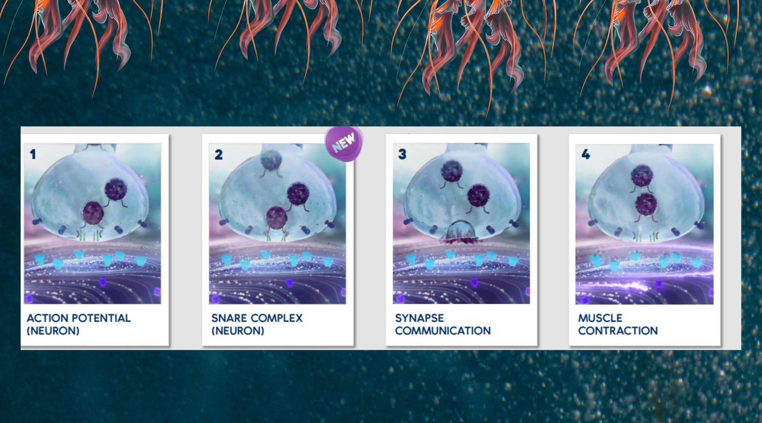 Ação Pré-Sináptica: possui tecnologia baseada em design in silico para identificar a melhor sequência peptídica que bloqueia a montagem do complexo SNARE, um conjunto de proteínas essenciais para a liberação de neurotransmissores. Ele age da seguinte forma: